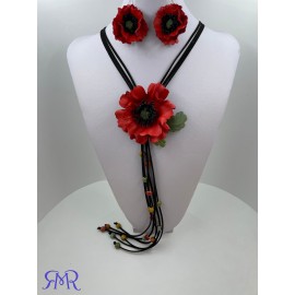 Auskarai ir kaklo papuošalas "Aguona" iš natūralios odos