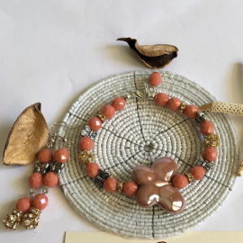 Rožinis kaklo papuošalas iš porceliano...
