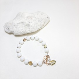 Apyrankė pagaminta iš balto, marmurinio žadeito, aukso spalvos hematito akmenukų, bei aukso spalvos detalių. Lengvai derinama...