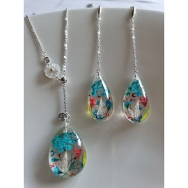 Pakabukas ir auskarai su pievų gėlytėmis:Aukštos kokybės juvelyrinė derva (lengvi, nedūžta)Tikri augalaiPakabukas - lašo formos 30 x 23 mmAuskarai - lašelio formos 30 x 15 mm (ilgis su užsegim0 kabliuku 90 x 15 mm)Visos detalės - sidabras 925Sidabrinės grandinėlės ilgis 44 cm (su prailginimu 50 cm).Pristatymas Lietuvoje ..