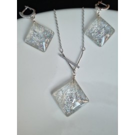 Pakabukas ir auskarai blizgantys:Aukštos kokybės juvelyrinė derva (lengvi, nedūžta)Pakabukas - kvadrato formos 25 x 25 mmAuskarai - kvadrato formos 20 x 20 mm (ilgis suangliško tipo užsegimu 45 x 20 mm)Visos detalės - sidabras 925Sidabrinės grandinėlės ilgis 38 cm (su prailginimu 43 cm).Pristatymas Lietuvoje - nemokamas...