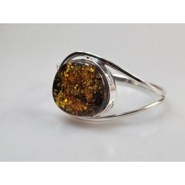 Sidabrinė apyrankė su gintaru. Sidabrinė apyrankė su žaliu gintaru Unikali dovana jai. Sidabrinė apyrankė ir natūraliu Baltijos gintaru. Reguliuojamas dydis. Sidabras 925. Gintaro dydis 3 cm. Svoris 21,50 gr..