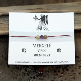 Akmenukai parinkti pagal tinkamumą ženklui, natūralūs, 3-4 mm dydžio: agatas, rožinis kvarcas, avantiūrinas.Yra kiekvieno akmenuko aprašymas. Tinka tiek vyrams, moterims, vaikams. Dydis reguliuojasi dėka slankiojančių virvučių. Dovanų pakuotėje. Akmenukai, kadangi natūralūs, gali skirtis savo atspalviu, raštu...