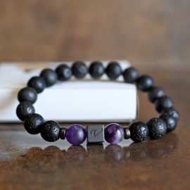 Tinka tiek vyrams, tiek moterims. Akmenukų skersmuo 10mm. Vulkaninė lava ir graviruotas raide/ženklu hematito kubas. Kartu priderinami keletas kitų natūralių akmenukų (pagal zodiako ženklą, spalvą, reikšmę). Supakuota dovanų dėžutėje, kartu pridedami akmenukų aprašymai - reikšmės. SVARBU:Užsakant nurodykite rankos riešo apimtį be lai..