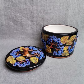 Pagaminta iš molio. Dengta glazūra. Tinka sąlyčiui su maistu.