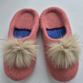 Rankų darbo ,avies vilnos šlepetės padas apsiųtas oda ..