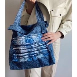Nertas vasarinis krepšys/rankinė su verstos odos rankenomis