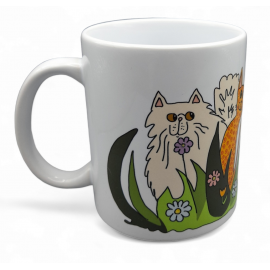 Dekoruotas puodelis. Ryškiaspalviai katinai. 290 ml.