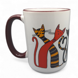 Dekoruotas puodelis 440 ml. Katinai medyje
