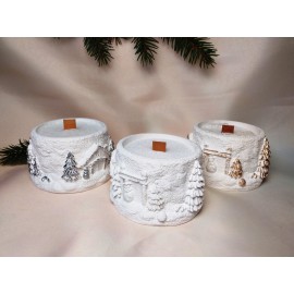 Palmių vaško žvakės su "šerkšnu" ir spragsinčia tarsi laužas medine dagtimi. A sidabro spalvos mėtų kvapo. B balta be kvapo, C aukso spalvos be kvapo. Skersmuo 8.5 cm, aukštis 6 cm. Dėžutė 11x12 cm. Dėžutė 13x13cm.Palmių vaškas, tai natūralus, ekologiškas, draugiškas aplinkai produktas.Žvakelė papuošia namų interjerą, išvalo erdvę, prid..
