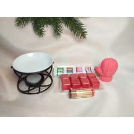 Dovanų rinkinys žvakės ir namų kvapai - tirpukai. Žvakė snaigė, skersmuo 5,5 cm, žvakė kankorėžis 9x6 cm, arbatinė žvakelė lempos kaitinimui, švelnaus gėlių aromato namų kvapas/tirpukai ir tirpinimo lempa arba žvakidė 7x7,5 cm, dovanų maišelis kurio aukštis15, dugnas/šonas 9, plotis 20cm.Žvakelė papuošia namų interjerą, išvalo erdvę, priduoda jauku..