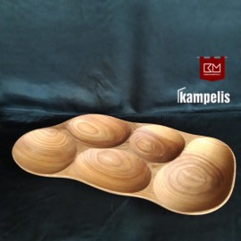 Padėklas išskaptuotas iš vientisos ąžuolo medienos, rankų darbo, padengtas maistiniu aliejumi, kiekvieną kartą vis kitoks. Padėklas puikiai tinka stalo serviravimui, duonai, sūriams ar kitiems maisto produktams. Puikiai tinka sudėti stalo įrankius, raktus ar kitas smulkmenas. Padėklo ilgis 26,5-27,5 cm, plotis apie 13 cm, aukštis 2,5 cm. Išma..
