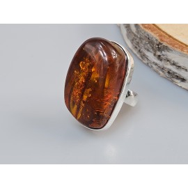 Masyvus gintarinis sidabrinis žiedas. Akmuo 3 x 2 cm. Reguliuojamas dydis. ..