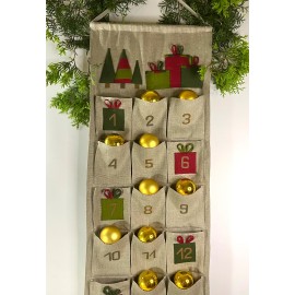 Šis Advento kalendorius yra puikus kalendorius laukti Kalėdų.Jis pagamintas iš 100% ekologiško lino.Lininis Advento kalendorius Jūsų laukimą iki Kalėdų pavers magija. Jame yra 24 kišenės – tai reiškia 24 galimybes nustebinti savo artimuosius, nesvarbu, ar vaikas, ar suaugęs. Šis kalendorius yra natūralių spalvų, todėl lengvai įsilieja į bet kokį ka..