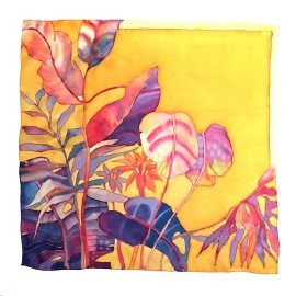Tapytas natūralus šilkas. Linksmos, ryškios spalvos - pakels nuotaiką. Tai nuostabi maža šilkinės skarelė, švelniai priglus ir sušildys jautrią odą.Natūralus šilkas : PONGEDydis : 50x50cmSpalvos : GELTONA, Motyvas : AUGALINIS MOTYVASAtlikimo technika: ŠILKO TAPYBA, Tai vienietinis kūrinys tapytas ant ba..