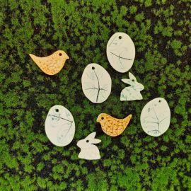 Berželių ar kitų šakelių velykiniai žaisliukai. "Blogoji" pusė balta, neglazūruota. Nemokamas siuntimas per paštomatus visoje Lietuvoje...