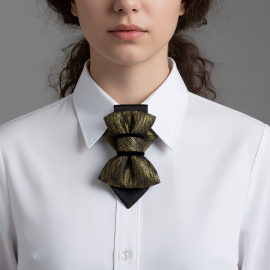 Prabangus moteriškas juodos ir auksinės spalvos kaklaraištis – rankų darbo išskirtinis aksesuaras"Auksinė" žiogaitė– tai daugiau nei kaklaraištis. Tai drąsus ir rafinuotas akcentas, suteikiantis išskirtinumo tiek kasdienei aprangai, tiek ypatingoms progoms. Sodrios juodos ir spindinčios auksinės spalvos derinys kuria elegantišką ir laikui nepa..