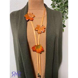 Kaklo papuošalas "Ruduo" iš natūralios odos ir akmens karoliukais