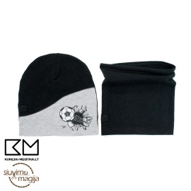 Komplektą sudaro kepurė ir mova Futbolo kamuolys siuvinėtas Sudėtis medvilnė..