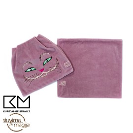 Komplektą sudaro kepurė ir movaSudėtis Medvilninis veliūrasPamušalas medvilnėKatinas siuvinėtas siuvinėjimo mašina..