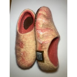 Rankų darbo ,avies vilnos šlepetės padas apsiųtas oda..