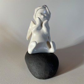 Keramika. Baltas molis, glazūra.Dydis: Padėkliukas - pjaustymo lentelė: plotis - 18 cm, ilgis - 28 cm.Dubenėlis: diametras - 13 cm.Citrina (indelis dantų krapštukams) - diametras 5-6 cm.Dovanų dėžutė: plotis...