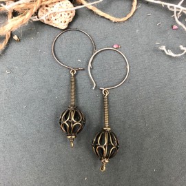 Auskarai pagaminti pagal auskarų radinius Alytaus kapinyne, datuojami XIV a. Žalvaris, oksidas. Auskaro dalis, veriama į ausį, sidabrinė. Bendras auskaro ilgis apie 69 mmPrekės aprašymas