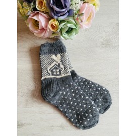 Megztos vilnonės kojinės šokoladinės spalvos su mažais elniukais