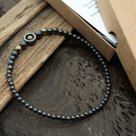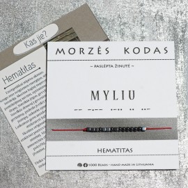 Pasakyk "MYLIU" kitaip. Plonytės juodos virvutės Sėkmės apyrankė, Morzės abėcėle, iš mažyčių 2 mm hematito akmenukų, blizgios juodos spalvos, suvertas žodis "Myliu".Dydis - ilgis reguliuojasi. Dovanų p...Prekės aprašymas