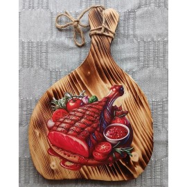 Pjaustymo lentelė pagaminta iš spygliuočių medienos ,išpjaustant senoviniu būdu - karštos vielos pagalba. Serviravimo pusė yra dekoruota dekupažo būdu,pjaustymo pusė yra padengta maistinio aliejaus ir bičių vaško mišiniu.Lentelės išmatavimai - 34 x 25 cm,storis -2 cm. Lentelė yra originali ir vienetinė. Medinių gaminių negal..