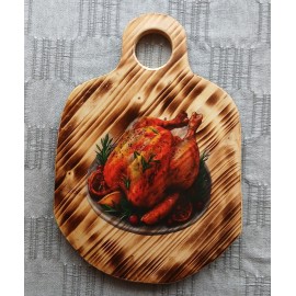 Pjaustymo lentelė yra pagaminta iš spygliuočių medienos,išpjaunant senoviniu būdu - karštos vielos pagalba.Serviravimo pusė yra dekoruota dekupažo būdu,pjaustymo pusė yra padengta maistinio aliejaus ir bičių vaško mišiniu.Lentelės išmatavimai - 35x25 cm.Lentelė yra originali ir vienetinė.  ..