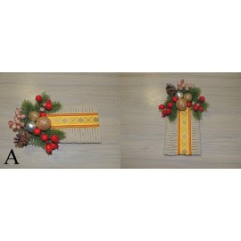 Pagaminta iš lininės virvės, natūralių kankorėžių, riešutų kevalų, austo kaspinėlio, kitų detalių.