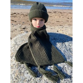 Alpakos ir vilnos komplektas. Kepurė ir šalikas alyvos spalvos