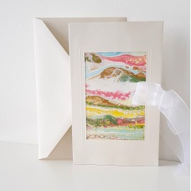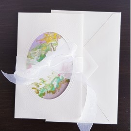 Pinigėlis yra bene geriausias dovanų čekis, kurį priima bet kuri pasaulio parduotuvė, tad tokių "čekių" dovanojimas tapo labai populiarus. Ir vis tik, tokia dovana gali būti personalizuota. Pastelinių atspalvių, giedros nuotaikos, labai šiltas ir jaukus. Atviruko - vokelio matmuo 18 x 12 cm. Turi ir papildomą tradicinį voką. Kaspinų ilgis 25 cm. Telieka įdėti „čekį“, parašyti linkėjimus ir sveikinti.
