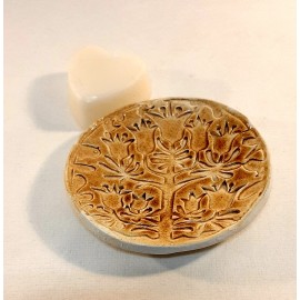 Rankų darbo keramikinė muilinė, dekoruota įspaudais, galima naudoti ir kaip lėkštutę desertui. Praktiška dovana mėgstančioms vienetinius rankų darbo gaminius.Dydis 9 x 9 cm.Jei nėra sandėlyje pagaminsiu per 10 dienų..