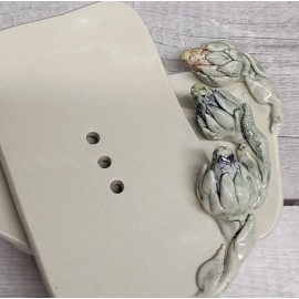 Baltas molis, glazūraMuilinės ilgis ~ 11 cm, plotis ~ 7,5 cm, aukštis ~ 3-4 cm Rankų darbo keramikos muilinė ant kojelių su skylutėmis vandeniui nubėgti.Visi keramikos gaminiai yra rankų darbo, tad gali šiek tiek skirtis nuo esančio nuotraukoje. Prekę pagaminti užtrunka 2-3 savaites...