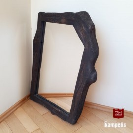 Veidrodžio rėmas pagamintas iš ąžuolo medienos, su išryškinta medžio faktūra, padengtas juodos spalvos beicu ir medienai skirtu aliejumi, Veidrodis kabinamas ant sienos ( nugarėlėje yra skylutė kabliukui. Veidrodis paruoštas vertikaliam pakabinimui.Pagal kliento pageidavimus galime pagaminti ir kitokių išmatavimų.Veidrodžio išmatavimai 78 x 62 x 4 ..